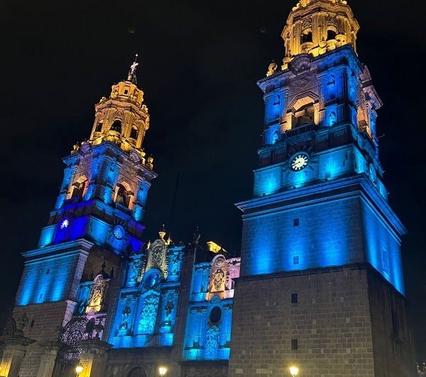 La Catedral de Morelia se pintó de azul turquesa ayer por la noche en ocasión del Día Internacional de concientización…